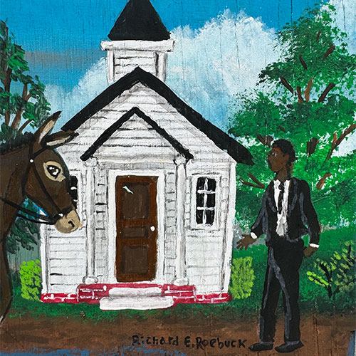 Richard E. Roebuck learned to paint as a child by watching his mother Sally Pearl paint. He was strongly influenced by her work and at an early age was sketching and painting flowers and animals in a style very similar to hers.