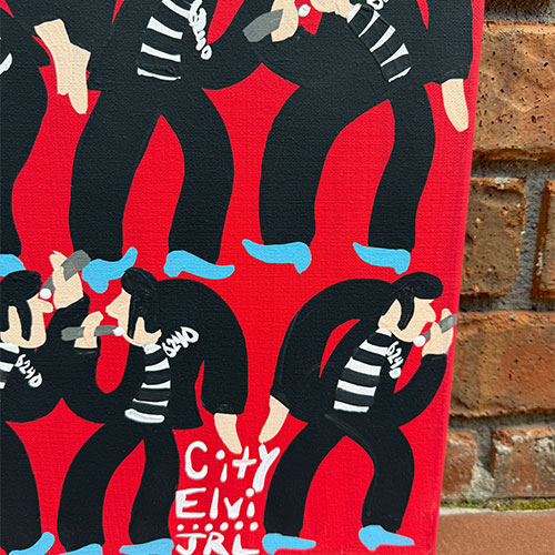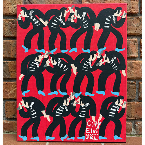 City Elvis is 16" x 20" acrylic on canvas. Ships with tracking and insurance for $20. Does not ship outside the continental USA.