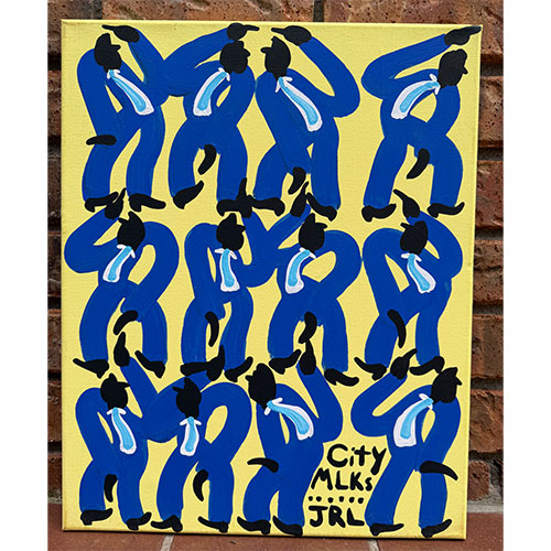 City MLKs is 16" x 20" acrylic on canvas. Ships with tracking and insurance for $20. Does not ship outside the continental USA.