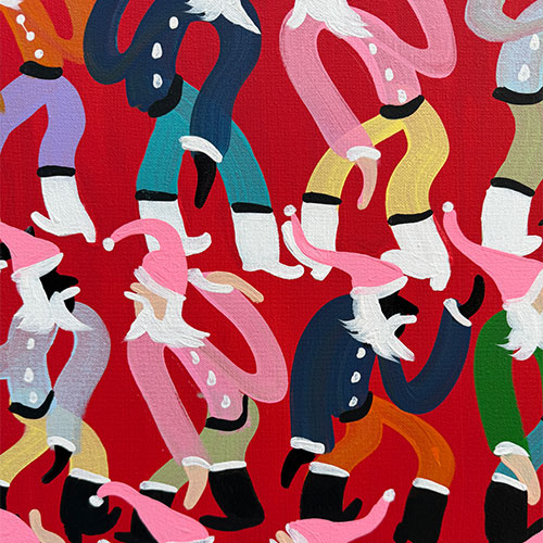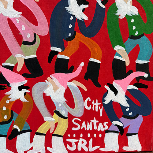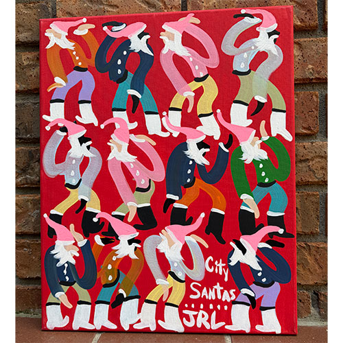 City Santas is 16" x 20" acrylic on canvas. Ships with tracking and insurance for $20. Does not ship outside the continental USA.