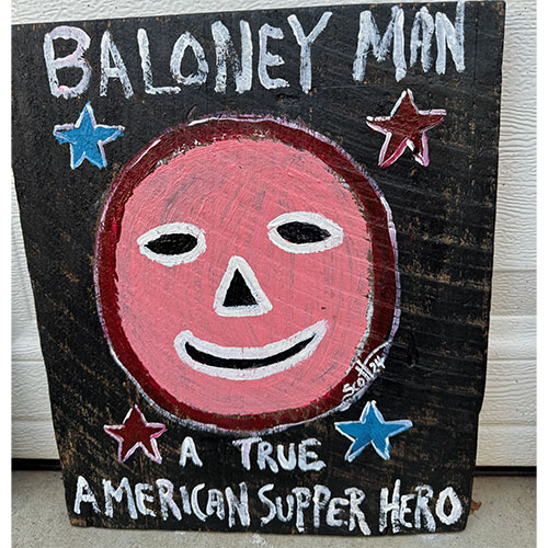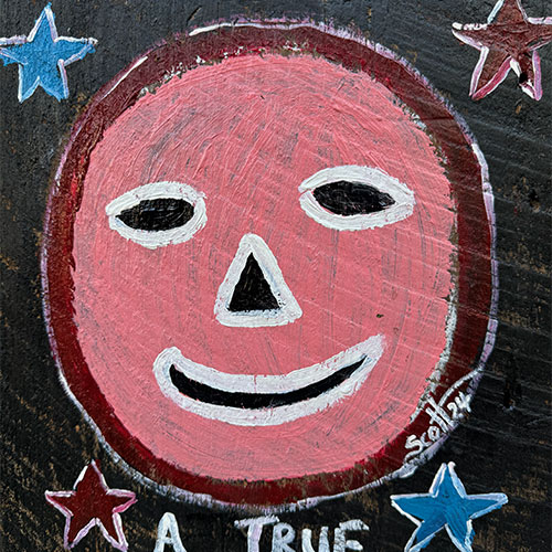 Scott McQueen, a full-time resident artist at Kentuck Art Center, lives in Northport, Alabama. Scott creates fun and colorful folk art using repurposed and scrap materials, along with acrylics.