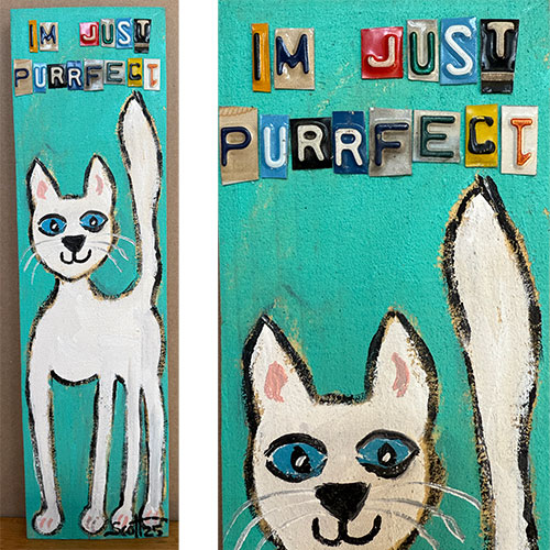Scott McQueen, a full-time resident artist at Kentuck Art Center, lives in Northport, Alabama. Scott creates fun and colorful folk art using repurposed and scrap materials, along with acrylics.