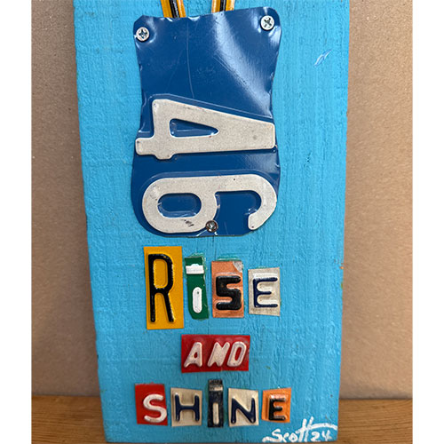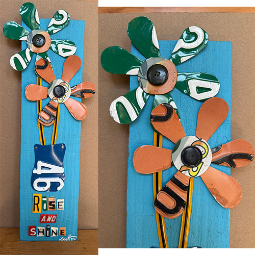 Scott McQueen, a full-time resident artist at Kentuck Art Center, lives in Northport, Alabama. Scott creates fun and colorful folk art using repurposed and scrap materials, along with acrylics.