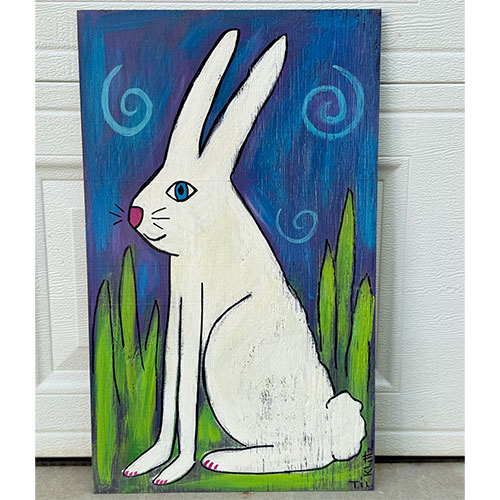 South Carolina artists Tim and Lisa Kluttz love bright colors! They utilize found, reclaimed and recycled materials to create happy, colorful and sometimes whimsical art work. Tim is the ultimate collector and recycler so there is never a shortage of materials. The couple’s styles are complimentary and favorite subjects are cats, flowers, dogs, chickens, mermaids and the Statue of Liberty. Their work can be found in galleries and at art shows throughout the Southeast and of course at their home studio, St. Peter’s Farm.