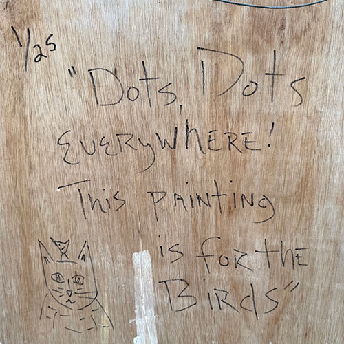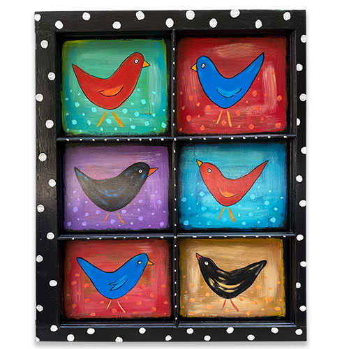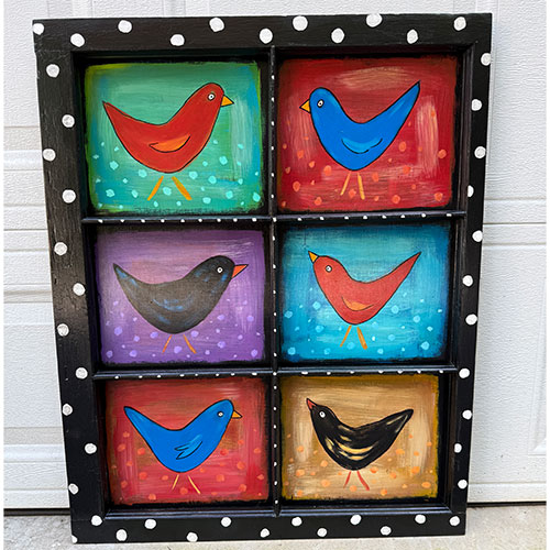 Created on a found wood window. Measures 28" wide, 34.5" long, 1.5" wide.