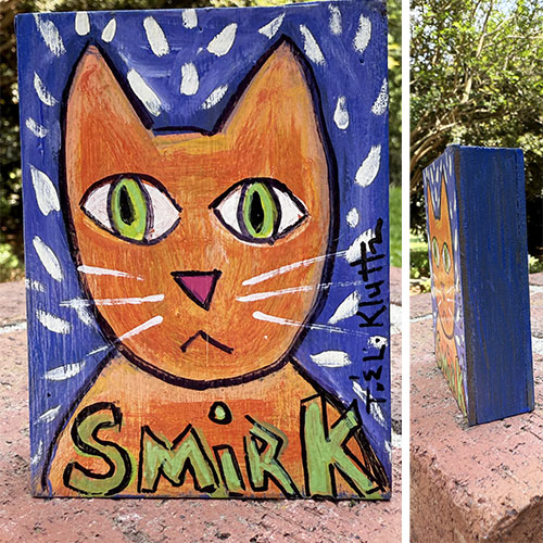 South Carolina artists Tim and Lisa Kluttz love bright colors! They utilize found, reclaimed and recycled materials to create happy, colorful and sometimes whimsical art work. Tim is the ultimate collector and recycler so there is never a shortage of materials. The couple’s styles are complimentary and favorite subjects are cats, flowers, dogs, chickens, mermaids and the Statue of Liberty. Their work can be found in galleries and at art shows throughout the Southeast and of course at their home studio, St. Peter’s Farm.