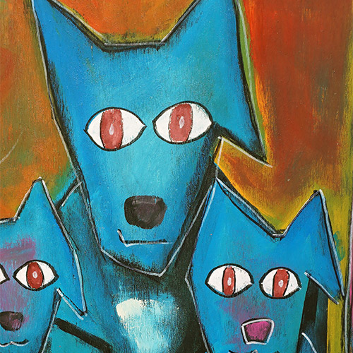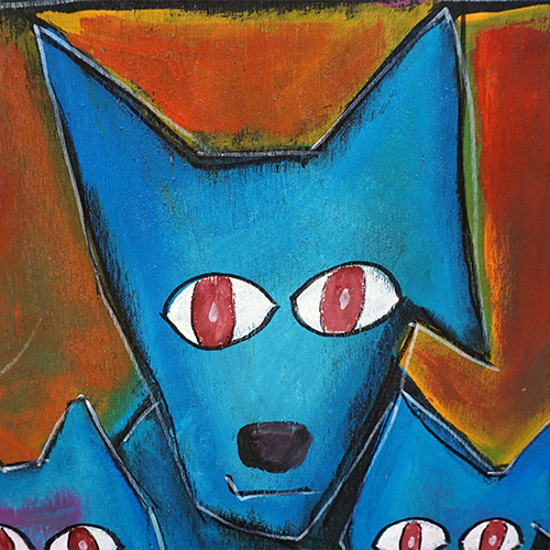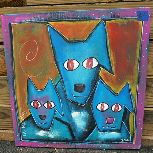 Created on a piece of recycled board, this Dog painting is 24" wide and 24" long.