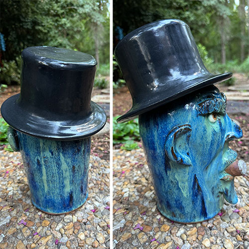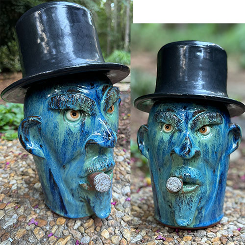 From one of the oldest potting families in the South, Billy Joe is a descendant of Peter Craven, who set up a pottery business in North Carolina as early as 1760. Billy Joe learned to turn from members of the Hewell family and is now a leading producer of unglazed gardenware in the region. While Craven Pottery continues to produce outdoor decorative and functional pottery, Billy Joe finds time to continue the tradition of creating face jugs in his own unmistakable style.