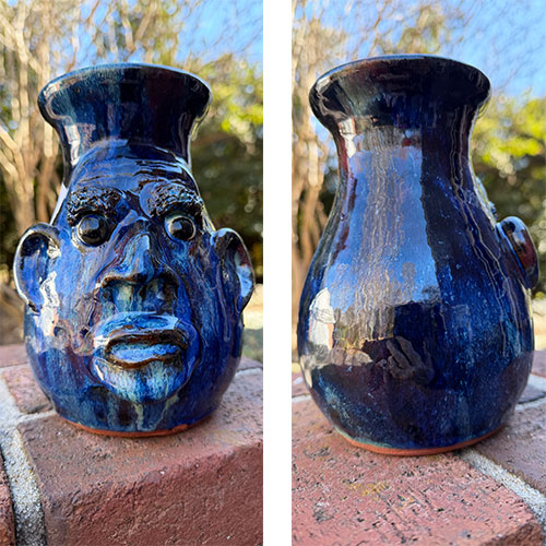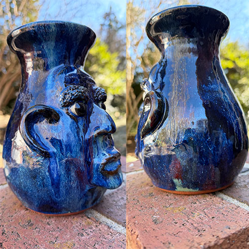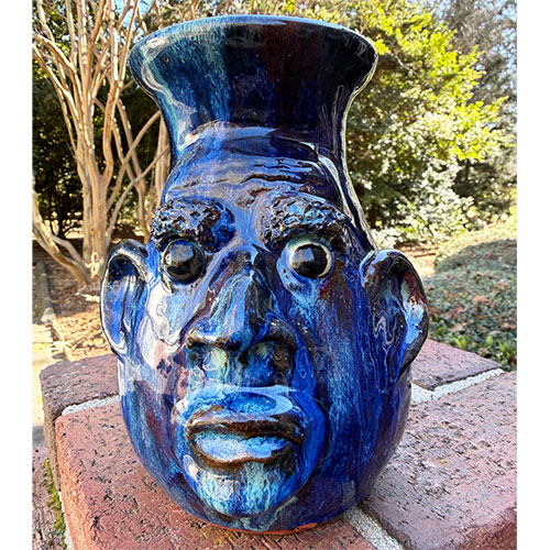 From one of the oldest potting families in the South, Billy Joe is a descendant of Peter Craven, who set up a pottery business in North Carolina as early as 1760. Billy Joe learned to turn from members of the Hewell family and is now a leading producer of unglazed gardenware in the region. While Craven Pottery continues to produce outdoor decorative and functional pottery, Billy Joe finds time to continue the tradition of creating face jugs in his own unmistakable style.