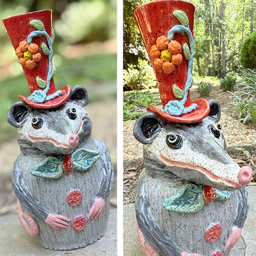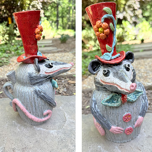 Gentleman Possum is a new creation from Bo Thompson. Stands 10" tall, 8" deep and has a 3.25" base.