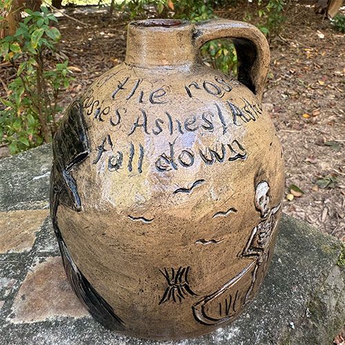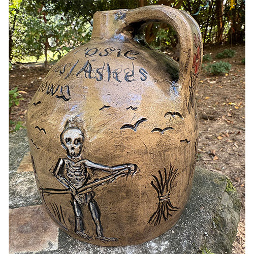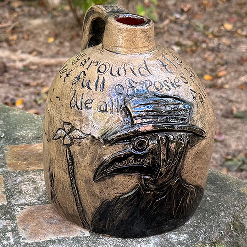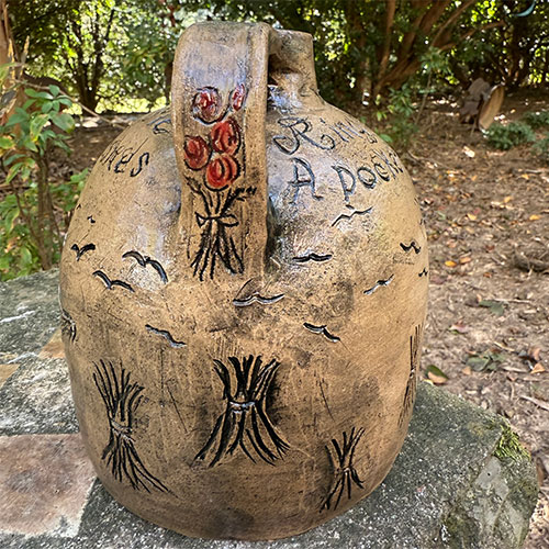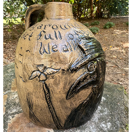 Breezy's handcrafted jugs are inspired by traditional Appalachian Folk Art and feature everything from wildlife to regional moonshining heroes. The process of handcrafting these jugs takes several days from the initial throwing, to carving and painting the final product.