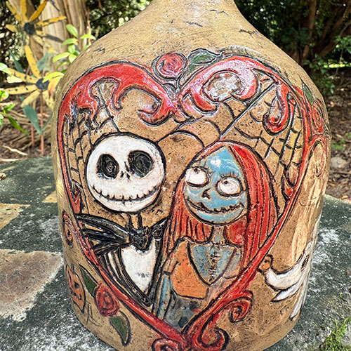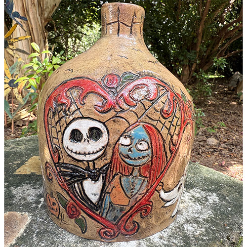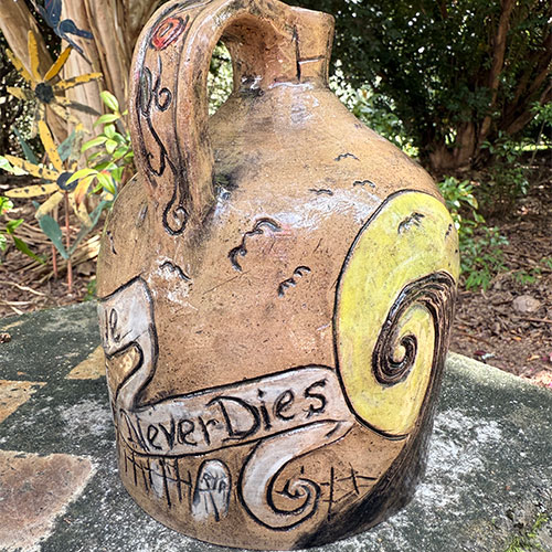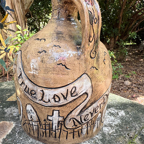 Breezy's handcrafted jugs are inspired by traditional Appalachian Folk Art and feature everything from wildlife to regional moonshining heroes. The process of handcrafting these jugs takes several days from the initial throwing, to carving and painting the final product.