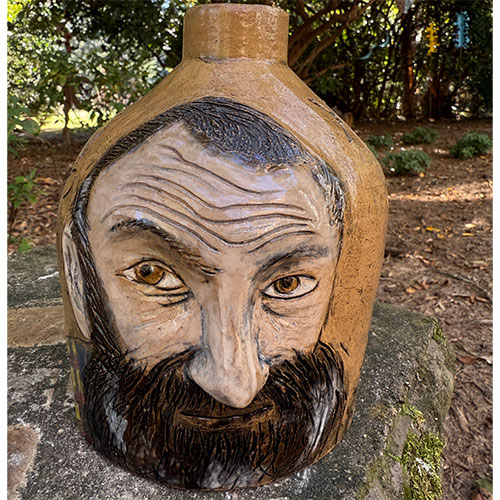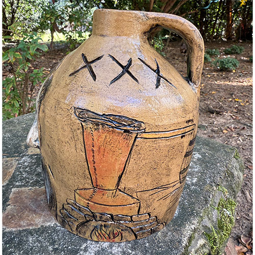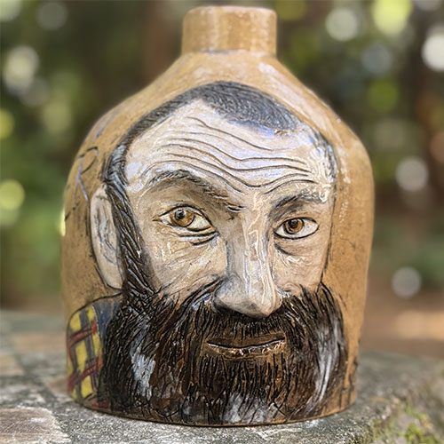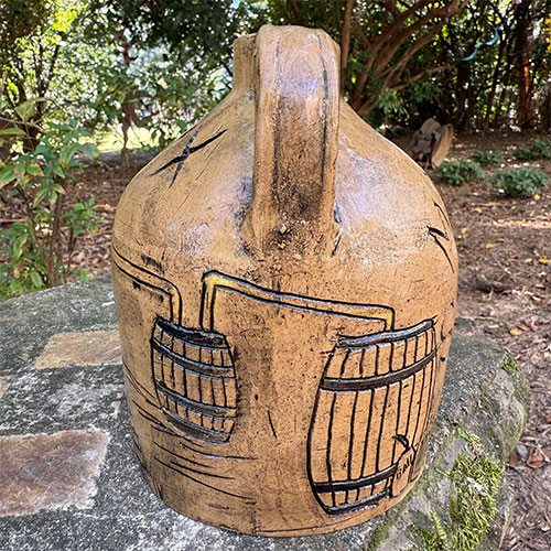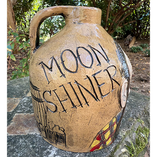 Breezy's handcrafted jugs are inspired by traditional Appalachian Folk Art and feature everything from wildlife to regional moonshining heroes. The process of handcrafting these jugs takes several days from the initial throwing, to carving and painting the final product.