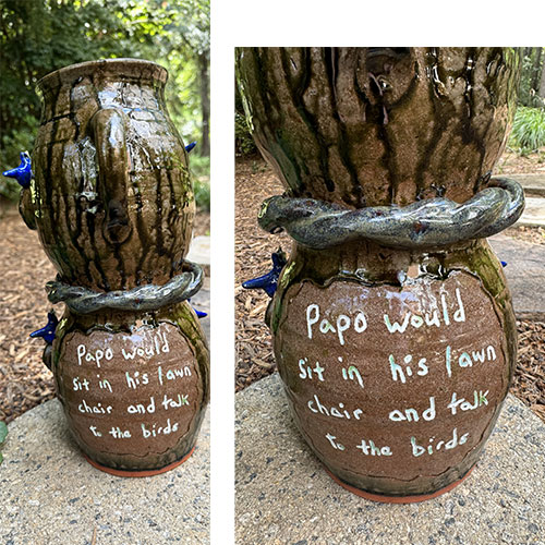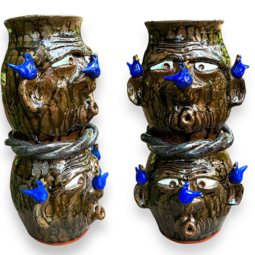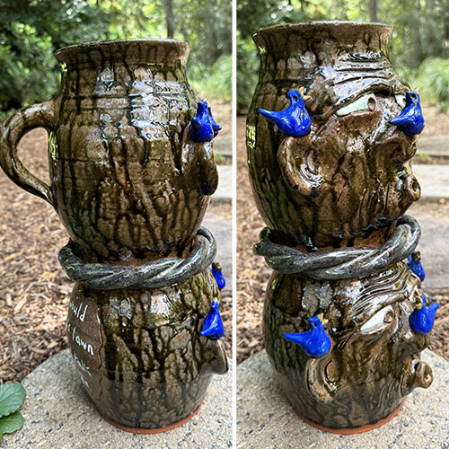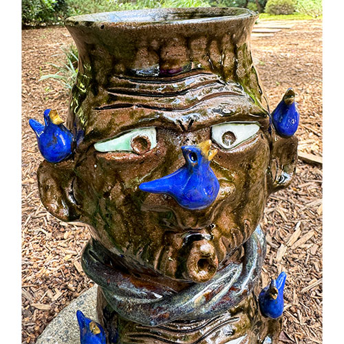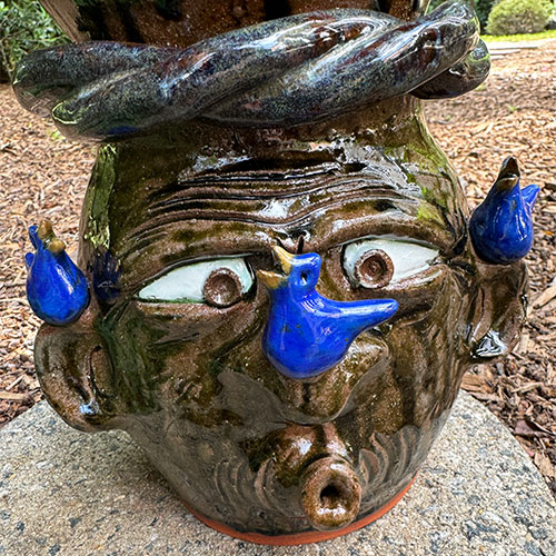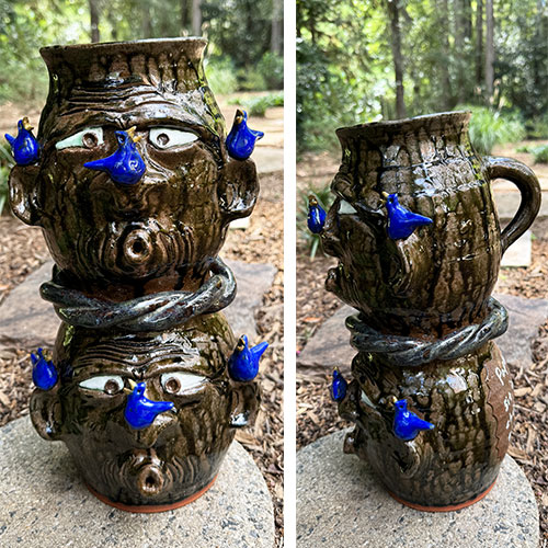 Georgia folk art potter Brian Wilson's Whistler Jugs with Birds are a nod to his beloved grandfather who could be found enjoying time outdoors with nature.