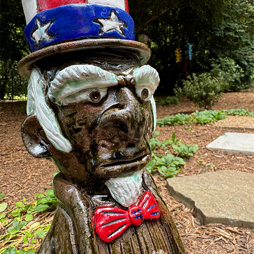 This handsome Uncle Sam is 19" tall and has a 4.25" base.