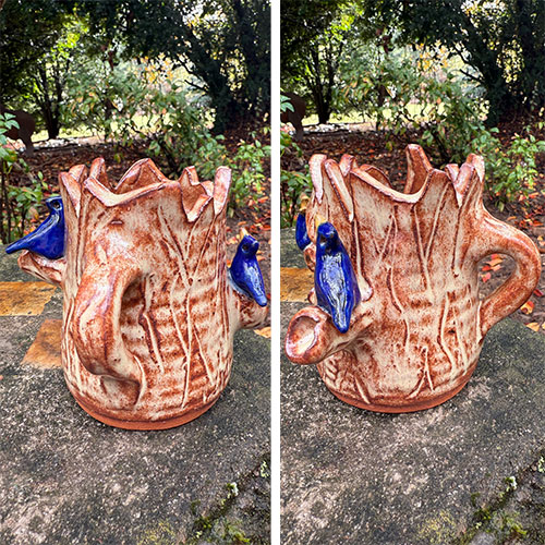 Georgia folk art potter Brian Wilson's Whistler pottery pieces with birds are a nod to his beloved grandfather who could be found enjoying time outdoors with nature.