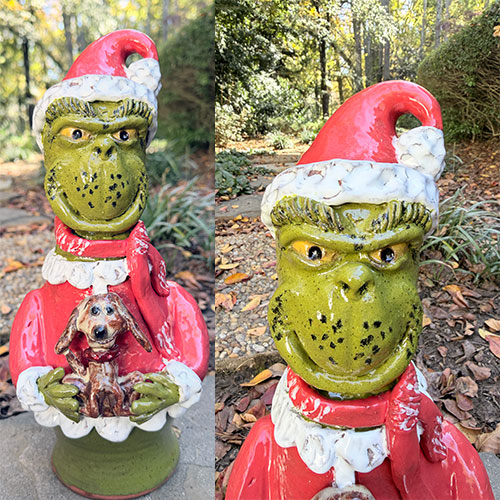 This Grinch piece is 14" tall, 6.5" wide and 4.25" base.