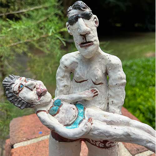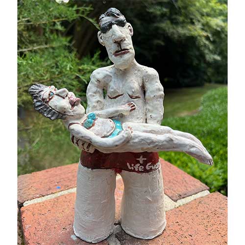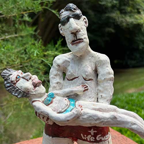 "My Hero" is a handsome life guard just doing his job Measures 10.5" tall and 8" wide.