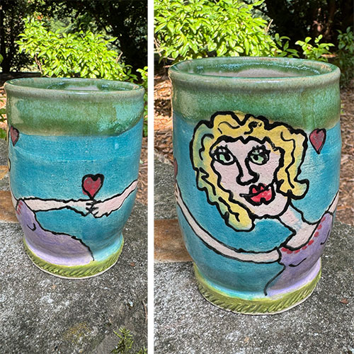 Carolyn Simmons is a Georgia folk art potter who delights in creating functional and non-functional pieces with a twist. We chose pieces with a chicken theme. Enjoy!