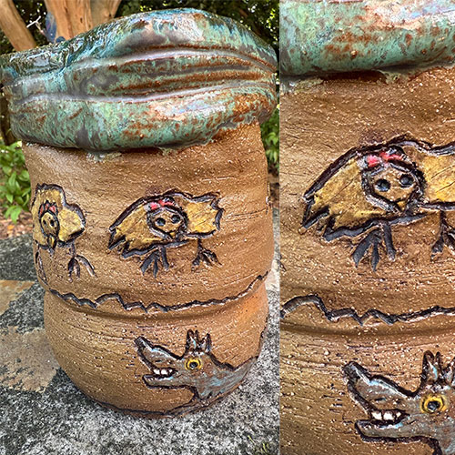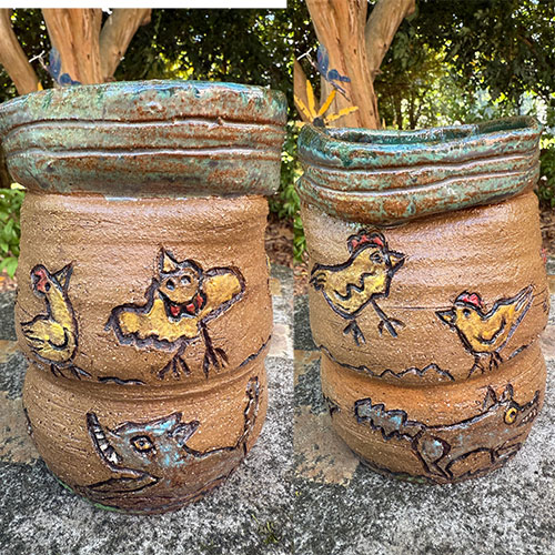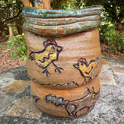 Carolyn Simmons is a Georgia folk art potter who delights in creating functional and non-functional pieces with a twist.
