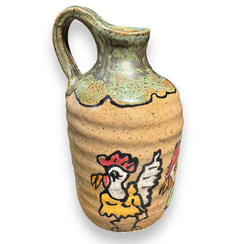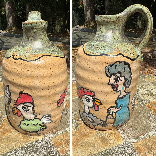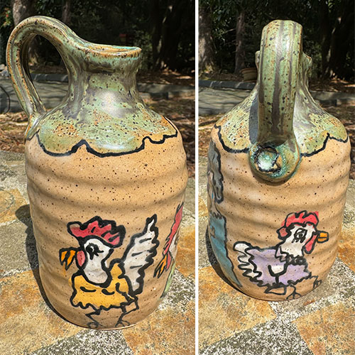 Carolyn Simmons is a Georgia folk art potter who delights in creating functional and non-functional pieces with a twist. We chose pieces with a chicken theme. Enjoy!