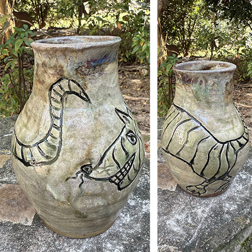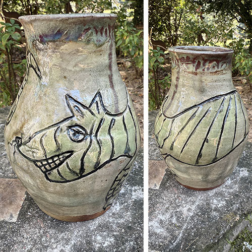 Carolyn Simmons is a Georgia folk art potter who delights in creating functional and non-functional pieces with a twist. We chose pieces with a chicken theme. Enjoy!
