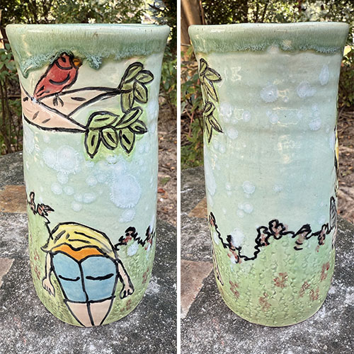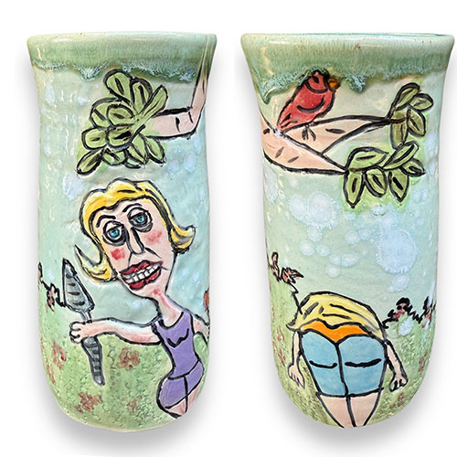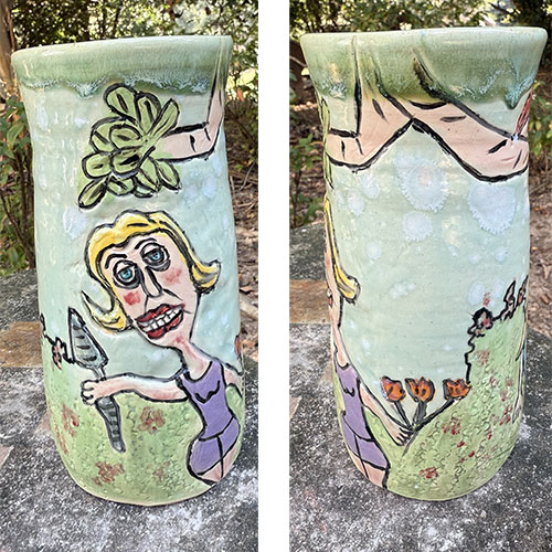 Carolyn Simmons is a Georgia folk art potter who delights in creating functional and non-functional pieces with a twist. We chose pieces with a chicken theme. Enjoy!
