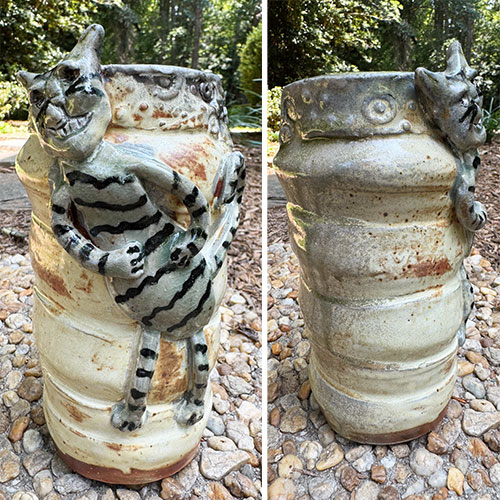 Carolyn Simmons is a Georgia folk art potter who delights in creating functional and non-functional pieces with a twist. We chose pieces with a chicken theme. Enjoy!