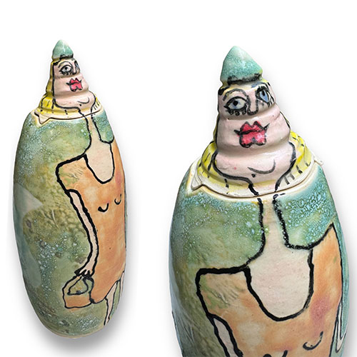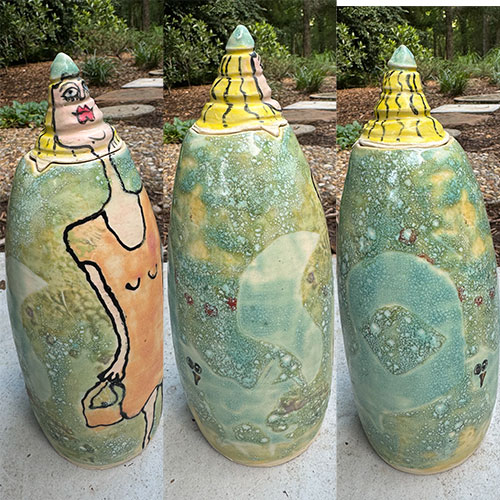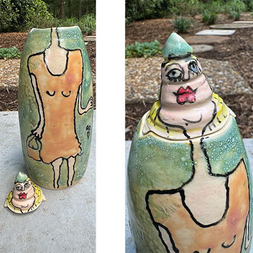Carolyn Simmons is a Georgia folk art potter who delights in creating functional and non-functional pieces with a twist. We chose pieces with a chicken theme. Enjoy!