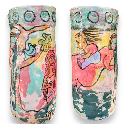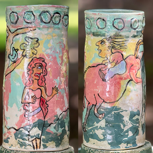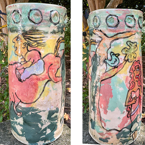 Carolyn Simmons is a Georgia folk art potter who delights in creating functional and non-functional pieces with a twist. We chose pieces with a chicken theme. Enjoy!