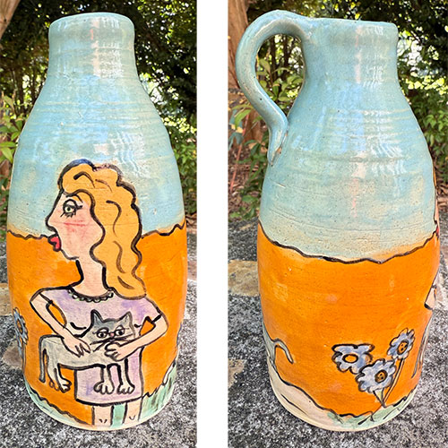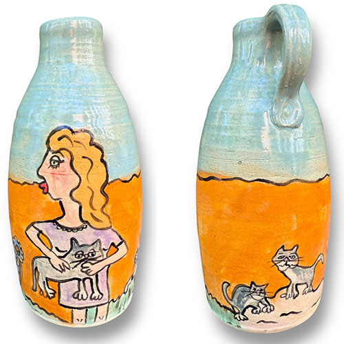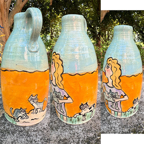 Carolyn Simmons is a Georgia folk art potter who delights in creating functional and non-functional pieces with a twist. We chose pieces with a chicken theme. Enjoy!