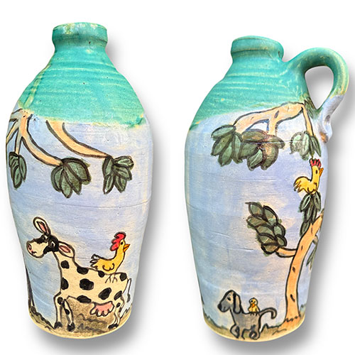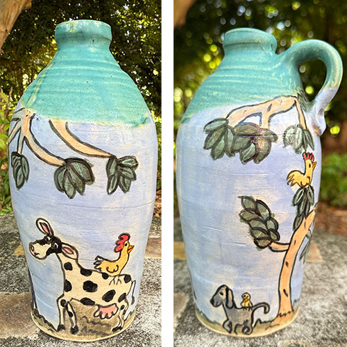 Carolyn Simmons is a Georgia folk art potter who delights in creating functional and non-functional pieces with a twist. We chose pieces with a chicken theme. Enjoy!
