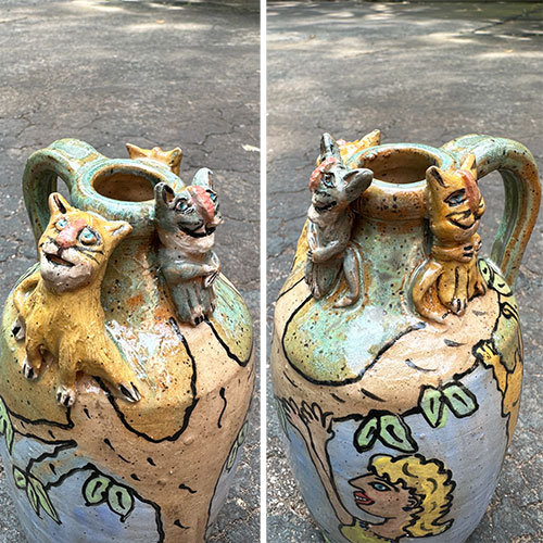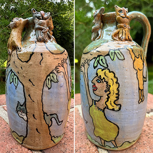 Carolyn Simmons is a Georgia folk art potter who delights in creating functional and non-functional pieces with a twist. We chose pieces with a chicken theme. Enjoy!