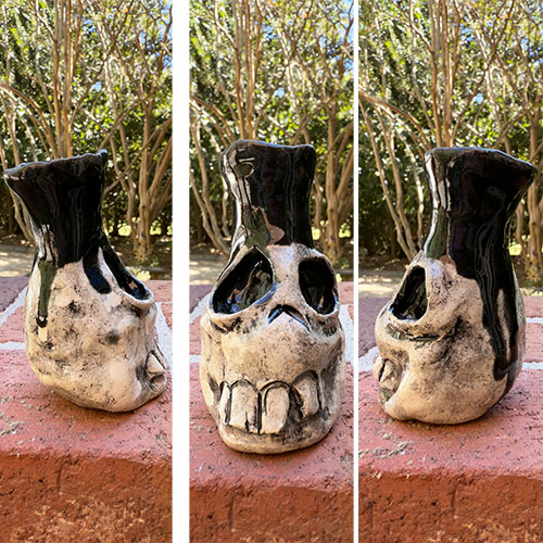 After teaching herself the pottery basics, Celena Schoen began making small beads and pendants for jewelry. Soon the landscape and culture of modern Appalachia found their way into her artwork. In 2014, she made her first miniature versions of traditional southern face jugs. A unique attention to detail immediately caught the attention of face-jug collectors. Her steady hand and patience has earned her recognition as a master of miniatures amongst her peers. She is a detail oriented artist, known for miniature pieces that now are part of the Georgia Art Museum.