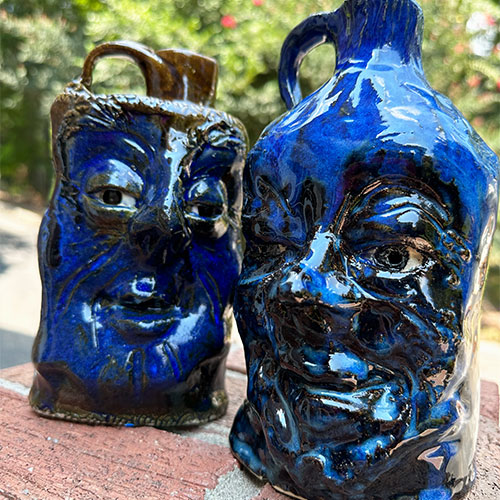 After teaching herself the pottery basics, Celena Schoen began making small beads and pendants for jewelry. Soon the landscape and culture of modern Appalachia found their way into her artwork. In 2014, she made her first miniature versions of traditional southern face jugs. A unique attention to detail immediately caught the attention of face-jug collectors. Her steady hand and patience has earned her recognition as a master of miniatures amongst her peers. She is a detail oriented artist, known for miniature pieces that now are part of the Georgia Art Museum.