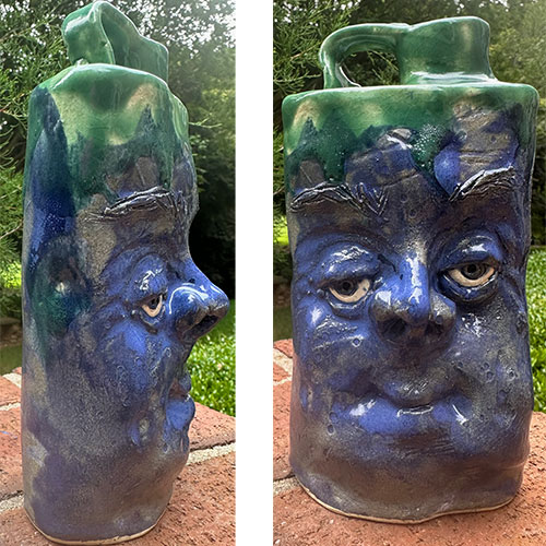 After teaching herself the pottery basics, Celena Schoen began making small beads and pendants for jewelry. Soon the landscape and culture of modern Appalachia found their way into her artwork. In 2014, she made her first miniature versions of traditional southern face jugs. A unique attention to detail immediately caught the attention of face-jug collectors. Her steady hand and patience has earned her recognition as a master of miniatures amongst her peers. She is a detail oriented artist, known for miniature pieces that now are part of the Georgia Art Museum.