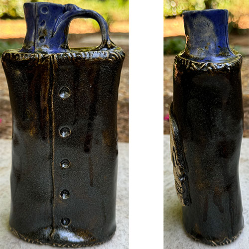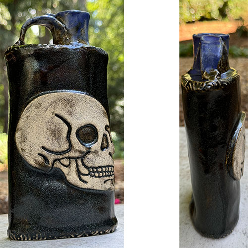 After teaching herself the pottery basics, Celena Schoen began making small beads and pendants for jewelry. Soon the landscape and culture of modern Appalachia found their way into her artwork. In 2014, she made her first miniature versions of traditional southern face jugs. A unique attention to detail immediately caught the attention of face-jug collectors. Her steady hand and patience has earned her recognition as a master of miniatures amongst her peers. She is a detail oriented artist, known for miniature pieces that now are part of the Georgia Art Museum.