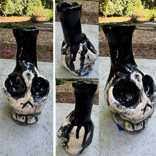 After teaching herself the pottery basics, Celena Schoen began making small beads and pendants for jewelry. Soon the landscape and culture of modern Appalachia found their way into her artwork. In 2014, she made her first miniature versions of traditional southern face jugs. A unique attention to detail immediately caught the attention of face-jug collectors. Her steady hand and patience has earned her recognition as a master of miniatures amongst her peers. She is a detail oriented artist, known for miniature pieces that now are part of the Georgia Art Museum.