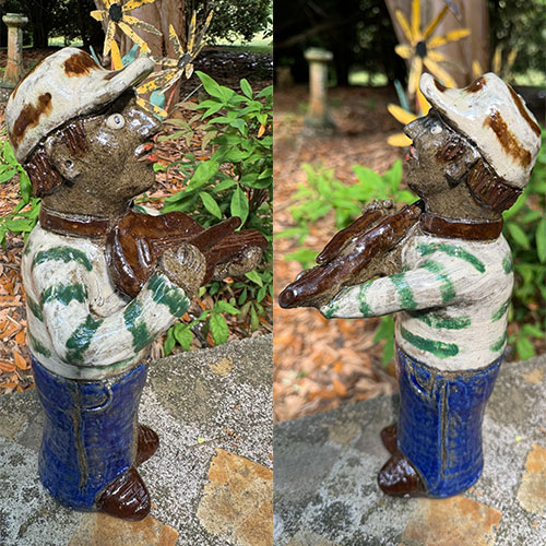 This figural piece is 10" tall and 5" wide. Ships for $20 with tracking and insurance.