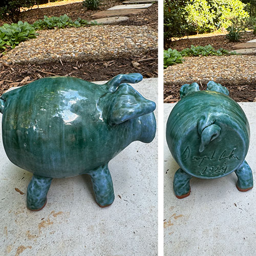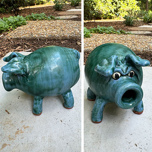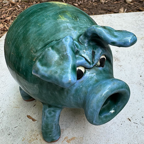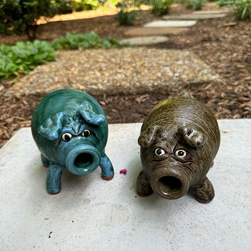 Dwayne Crocker strives to follow the generations old traditions characteristic of Southern folk art pottery starting from the ground up. He uses Georgia red clay, mixes glazes, and strains ashes for his glazes. He uses time honored methods, concepts, tools (a straw and a nail) and designs, just as the old timers before him.