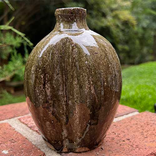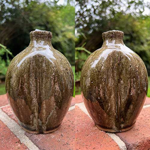 Here's a vase by Catawba potter Ed Lane. 7.75" tall, 3" top opening and 3.5" base. Color is best represented in natural light, outdoor photos.Ships for $12 within the continental USA. Does not ship to Canada.