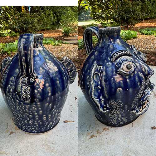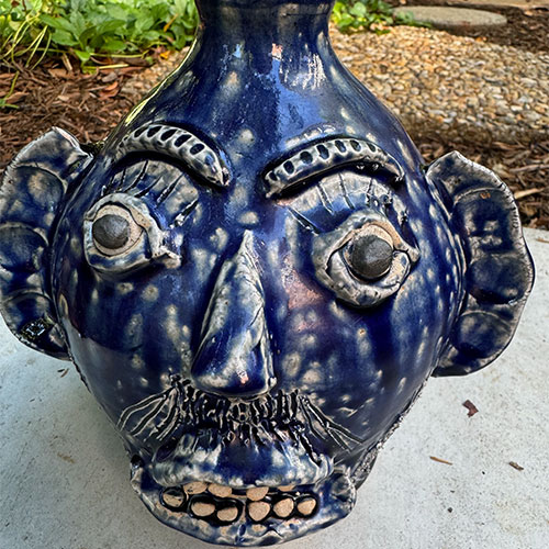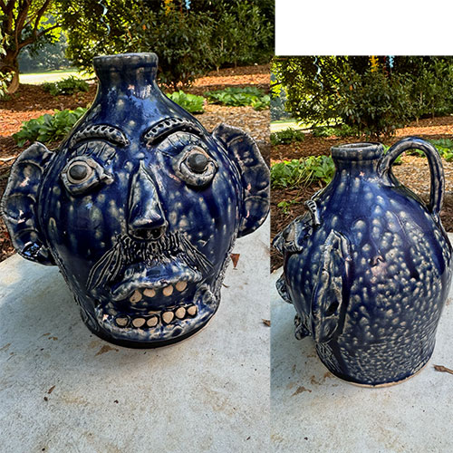 Here's a wood fired face jug by Catawba potter Ed Lane. 7.5" tall with a 4.25" base.Ships for $15 with tracking and insurance within the continental USA. Does not ship to Canada.