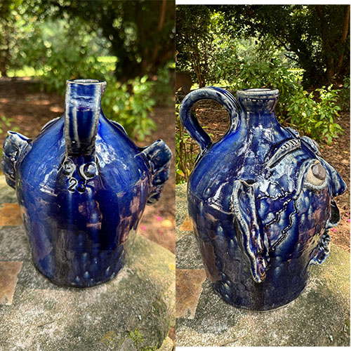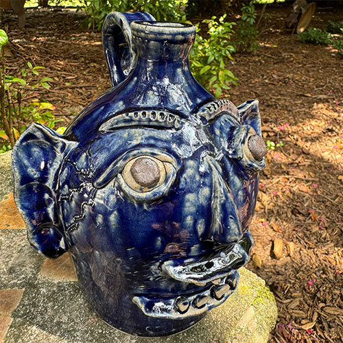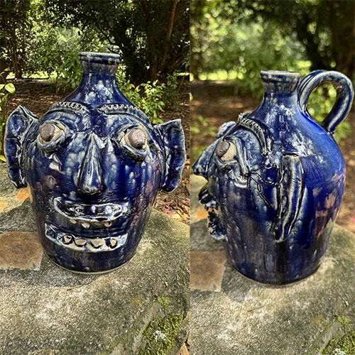 Here's a wood fired face jug by Catawba potter Ed Lane. 8" tall, about 7.5" wide and with a 4.25" base