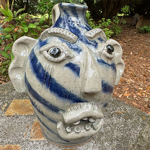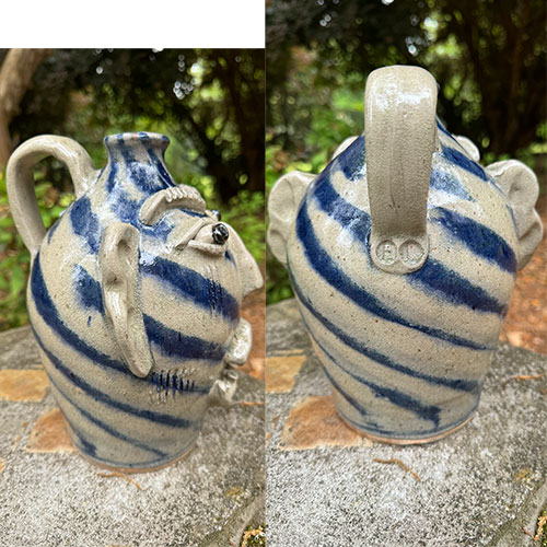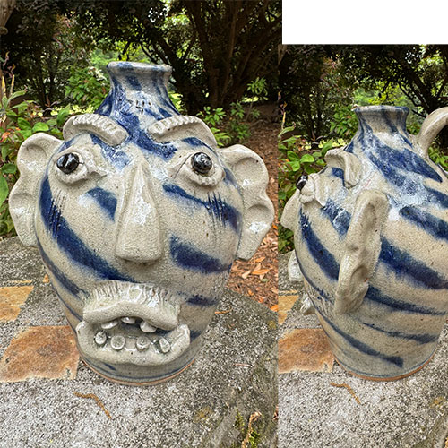 Here's a wood fired face jug by Catawba potter Ed Lane. 9" tall with a 4" base.Ships for $17 with tracking and insurance within the continental USA. Does not ship to Canada.