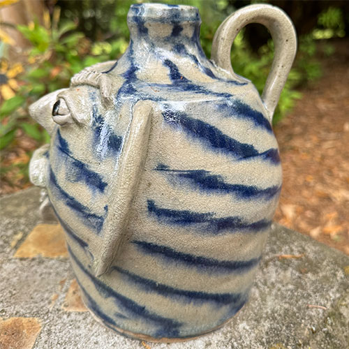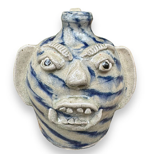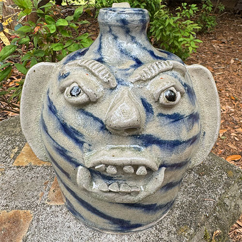 Here's a wood fired face jug by Catawba potter Ed Lane. 9" tall with a 5.25" base.Ships for $17 with tracking and insurance within the continental USA. Does not ship to Canada.