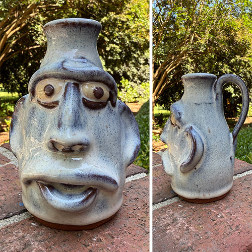 Harold Ferguson, part of the esteemed Ferguson family of Gillsville, carries pottery in his blood. As the nephew of renowned potter Bobby Ferguson, Harold has inherited the family’s passion and skill. Known for his fine craftsmanship and keen attention to detail, Harold’s face jugs and pig pottery have become highly sought-after pieces, making him a respected figure in the world of collectible folk pottery.