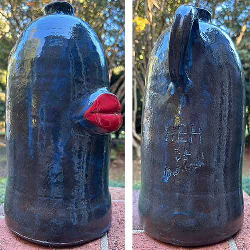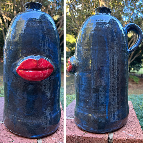 Heather Elyse Head says, "My favorite thing about my art is that it often makes people smile when they see it. I love to use bold colors and whimsical, exaggerated features on my face jugs and other pottery pieces.”