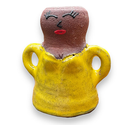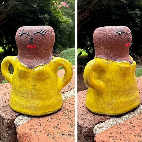 Heather Elyse Head says, "My favorite thing about my art is that it often makes people smile when they see it. I love to use bold colors and whimsical, exaggerated features on my face jugs and other pottery pieces.”