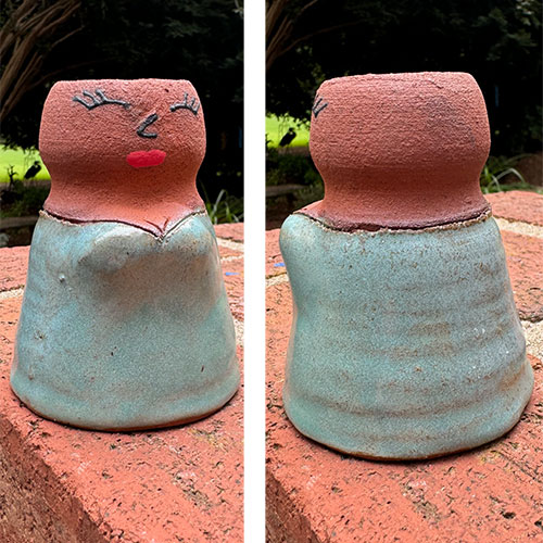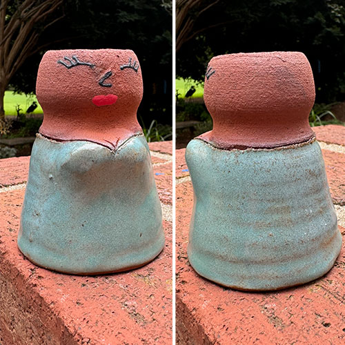 Heather Elyse Head says, "My favorite thing about my art is that it often makes people smile when they see it. I love to use bold colors and whimsical, exaggerated features on my face jugs and other pottery pieces.”