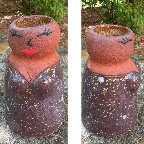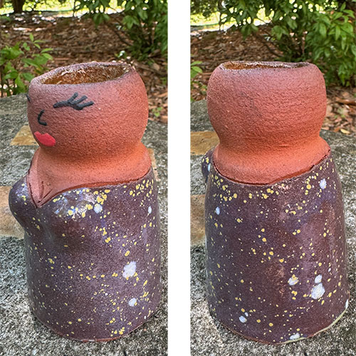 Heather Elyse Head says, "My favorite thing about my art is that it often makes people smile when they see it. I love to use bold colors and whimsical, exaggerated features on my face jugs and other pottery pieces.”